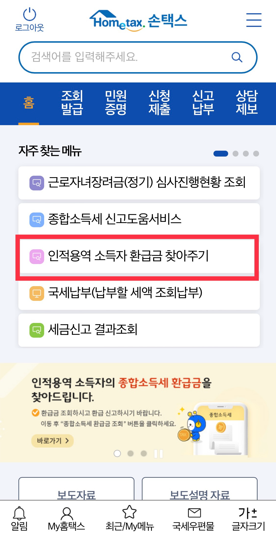 - 국세청 사칭 문자에 주의해 주세요! 입금, 계좌 비밀번호, 카드번호, 인터넷 뱅킹 정보 등을 요구할 경우 즉시 신고 바랍니다.