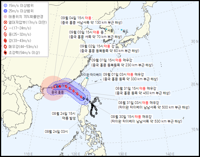 9월을 시작하는 시기에 한반도 인근에서 '트리플 태풍'이 생기면서 가을장마가 시작했다고 합니다. 현재까지 우리나라에 영향이 있을 가능성이 큰 태풍은 11호 하이쿠이로 현재 경로에서 우측으로 더 틀 경우에는 제주도를 비롯해 서해 부근으로 태풍의 영향이 있을 것으로 예상된다고 합니다. 실시간 경로를 확인하고 태풍을 대비하시길 바랍니다.